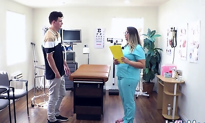 Sexy tits blonde doctor honey sucks and fucks a phat cock in examination room