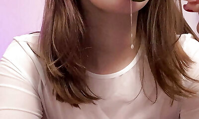 18 years college girl with glasses and red lipstick swallowed all cum POV.