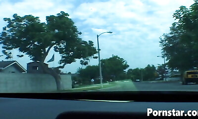 mature milf sitting in the car publicly milks off my wood to a cumshot