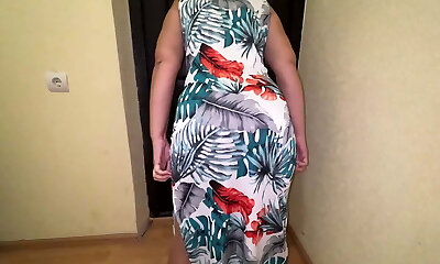 Milf step mommy in sexy dress wank cum on hairy pussy