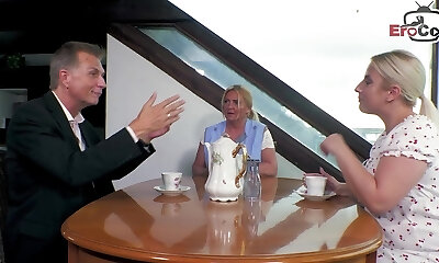 German swinger couple seduces big jugs mature housewife