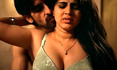 Brunette slut with big natural breasts in fishnet stockings