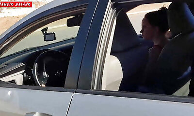 Thrilled girlfriend stops her boyfriend's car to blow him with intensity