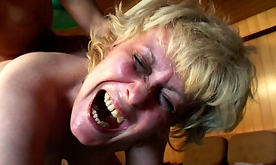 Nymphomaniac granny screams with happiness to be pummeled again