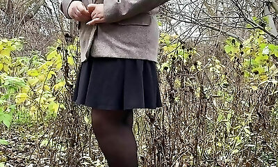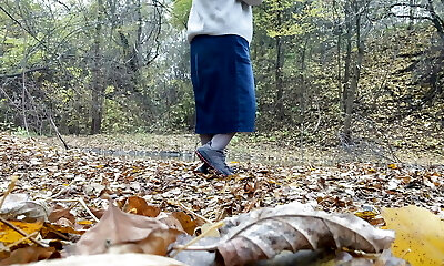 Bodacious MILF in a lengthy skirt pissing in the autumn park