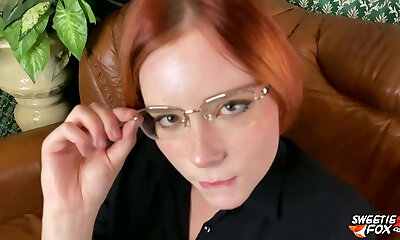 Towheaded with glasses letting the bald geezer fuck her in the classroom