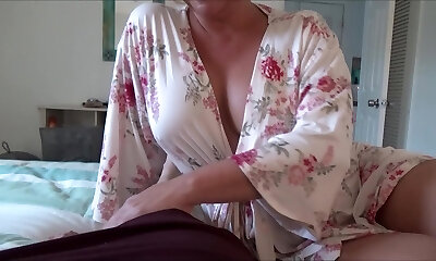 Mature Stepmom helps her sonnie with a broken leg relax